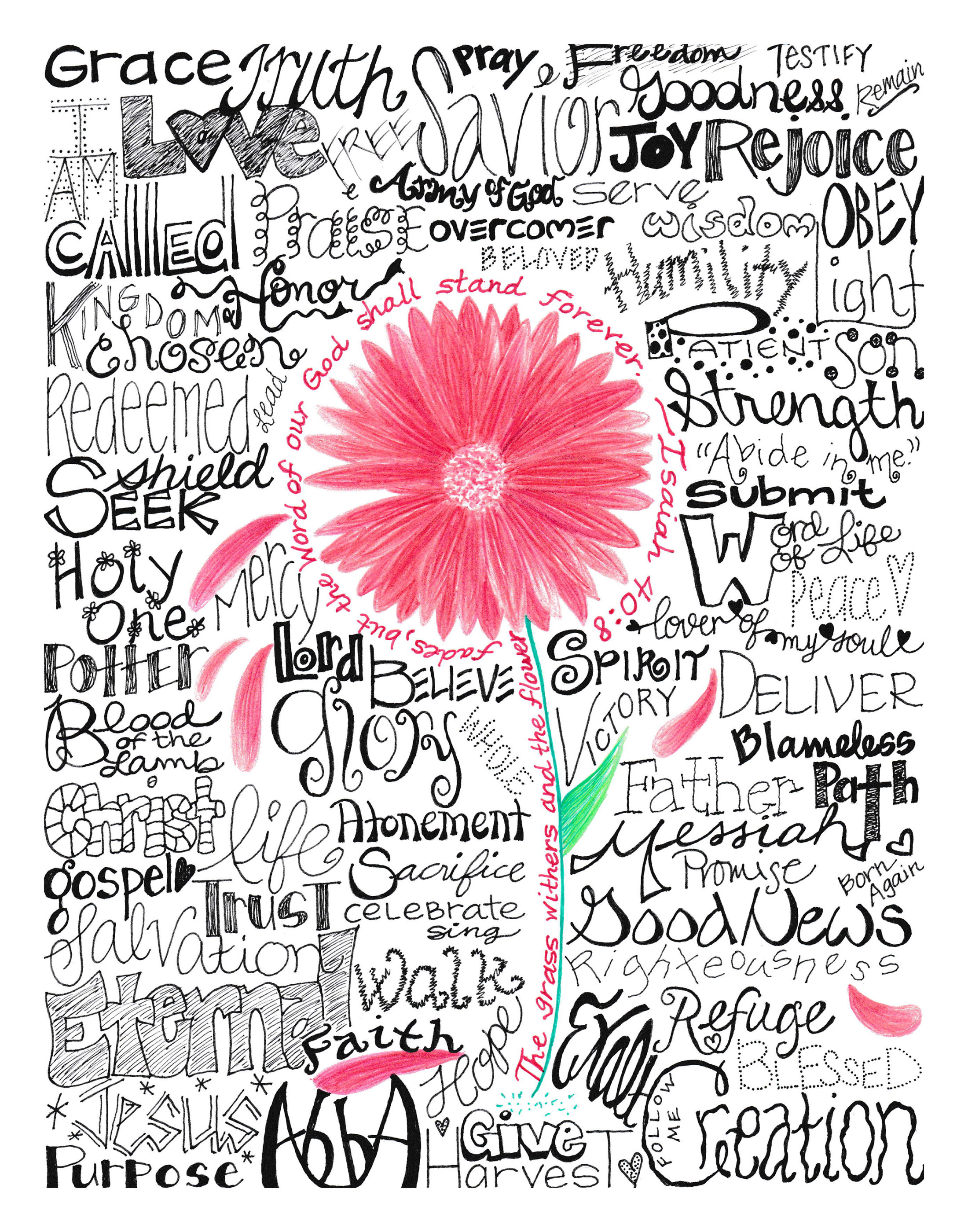 Flowers Fade is a sketch based on Isaiah 40:8. It comes printed on high quality paper, ready to be matted and framed. Print is 11x14.